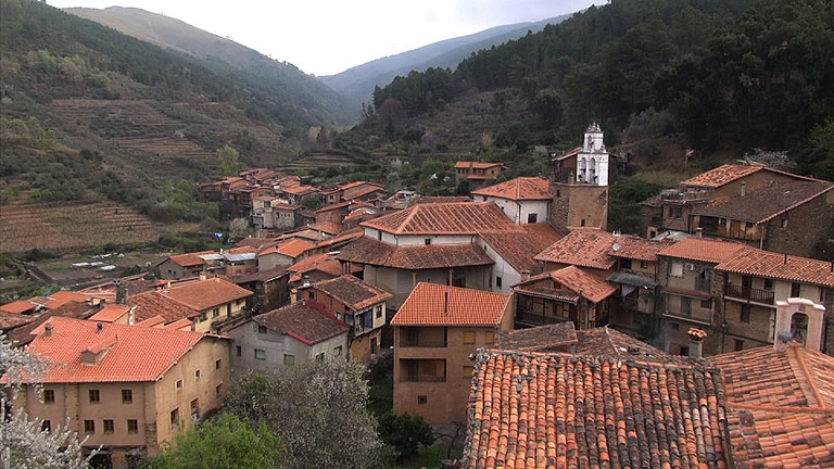 Siguiendo su ruta hacia el sur, visitamos uno de los valles más recónditos de Extremadura donde está encallada en el tiempo la localidad de Robledillo de Gata. En plena sierra y declarado Bien de Interés Cultural, este pequeño municipio de sólo 150 habitantes conserva edificios erigidos siguiendo métodos de construcción de la Edad Media.