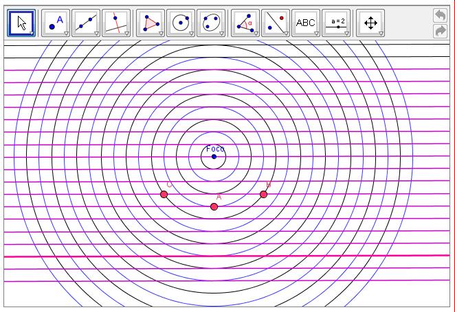 A continuación selecciona la recta y la circunferencia se cortan para conseguir otro punto más de la parábola. Puedes volver a ver el vídeo y pararlo en el momento oportuno.