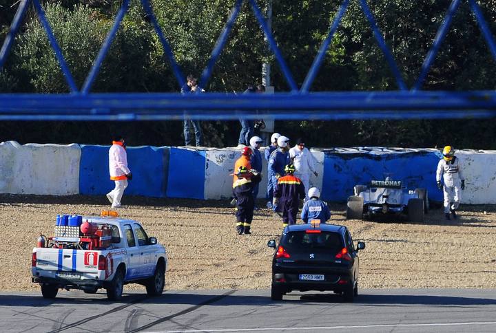 El piloto británico Lewis Hamilton ha sufrido este miércoles un accidente, sin consecuencias para él, en la segunda sesión de entrenamientos de los equipos de Fórmula Uno en el Circuito de Jerez.