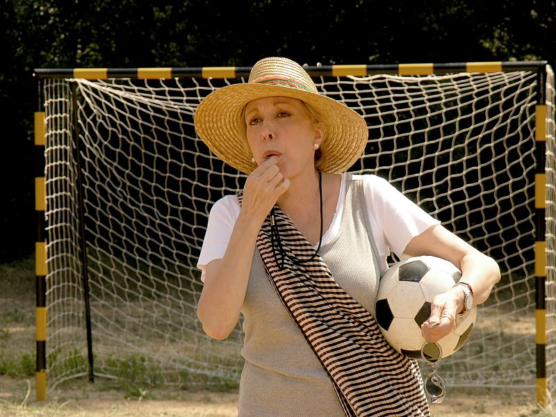 Eva incluso se atreverá a arbitrar un partido de fútbol con los niños.