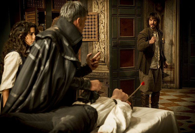 11.09.2014Águila Roja, guiado por la venganza, ha disparado al Comisario, pero Nuño se interpuso y se llevó el impacto de la lanza. Desesperado, Gonzalo se presenta en Palacio para ayudartve -