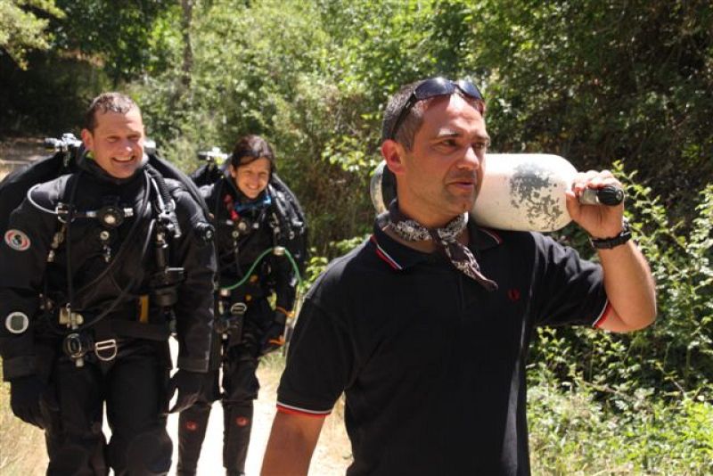 24.07.2009Algunos de los espeleobuceadores entrando para hacer el control de inmersión y ayudar a los de punta.Roberto F. García