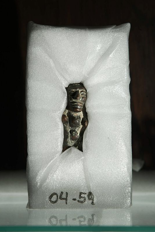 27.05.2009BAS17. BUENOS AIRES (ARGENTINA), 26/05/09.- Fotografía de hoy, 26 de mayo de 2009, en la que se observa una pequeña escultura de bronce que representa un personaje con joroba, perteneciente a la cultura Moche, la cual hace parte de dos colecciones arqueológicas restituídas por Argentina a Perú hoy, 26 de mayo de 2009, durante un acto oficial llevado a cabo en la Secretaría de Cultura de la Nación, en Buenos Aires (Argentina). EFE/Cézaro De LucaEFE/Cézaro De Luca