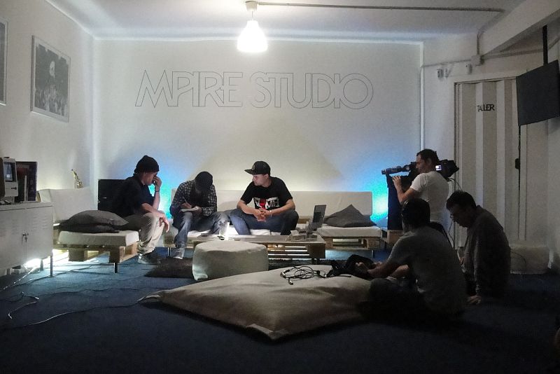 Eric con César y More en el estudio de grabación
