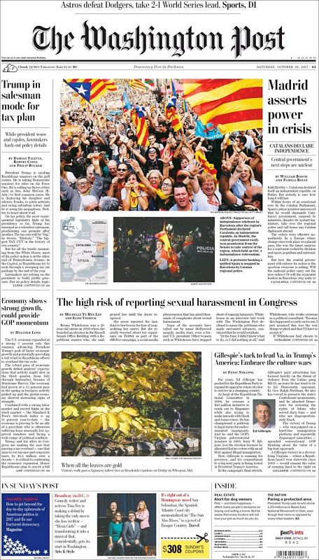 28.10.2017The Washington Postdestaca que "Madrid afirma su poder en la crisis" y dice que los "próximos movimientos del Gobierno no están claros".noticias