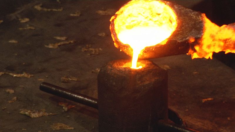 12.03.2014El horno donde se funde la chatarra y se convierte en una lava continua de bronce trabaja a una temperatura de 1.300 grados.tve -