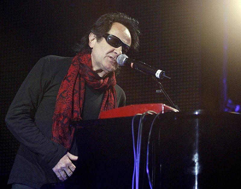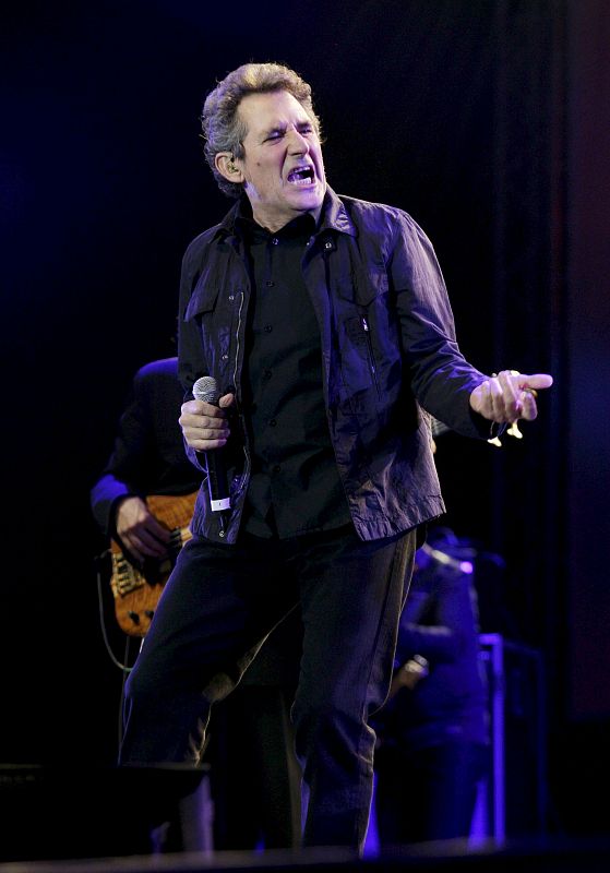 10.04.2010MD113. MADRID, 09/04/2010.- El cantante Miguel Ríos actúa durante su participación en "¡Viva Antonio!", un concierto homenaje al desaparecido músico Antonio Vega, celebrado en el Palacio de los Deportes de la Comunidad de Madrid. EFE/Alberto MartínEFE/Alberto Martín