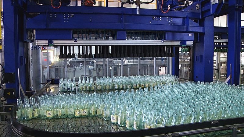03.03.2014Se revisan las botellas por si tienen algún daño u objeto en el interior, se vuelven a lavar y pasan a la llenadora.tve -