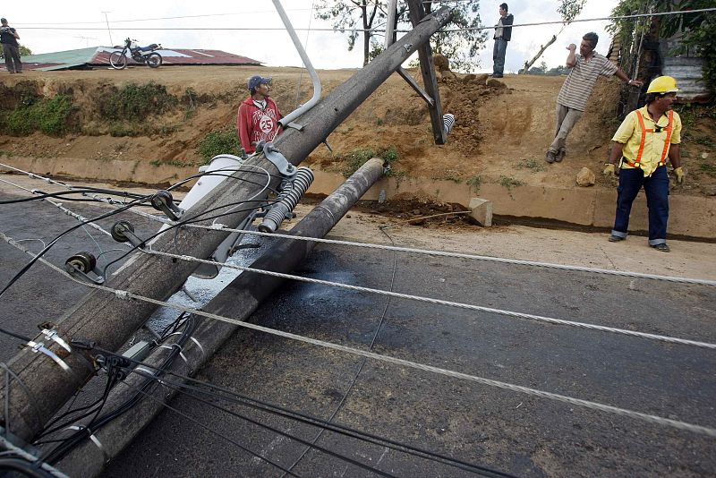09.01.2009SJS016 - SAN JOSÉ (COSTA RICA), 08/01/09.- Miembros del cuerpo de socorro tratan de abrir paso entre los daños y derrumbes en San Isidro de Alajuela, a 50 kilómetros de San José (Costa Rica) hoy, 8 de enero de 2009, después de que un fuerte sismo de 6,2 grados en la escala abierta de Richter sacudió el país y provocó daños en edificios tanto en la capital como en la misma Alajuela, donde al menos cuatro personas fallecieron y 42 comunidades fueron afectadas. EFE/Jeffrey ArguedasEFE/Jeffrey Arguedas
