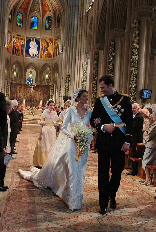 22.05.2009MD168. Madrid, 22/05/04.- El Príncipe Felipe y Letizia Ortiz salen de la Catedral de La Almudena en Madrid, tras contraer hoy matrimonio. EFE/MANUEL H. DE LEÓN ***POOL*** NO VENTASEFE