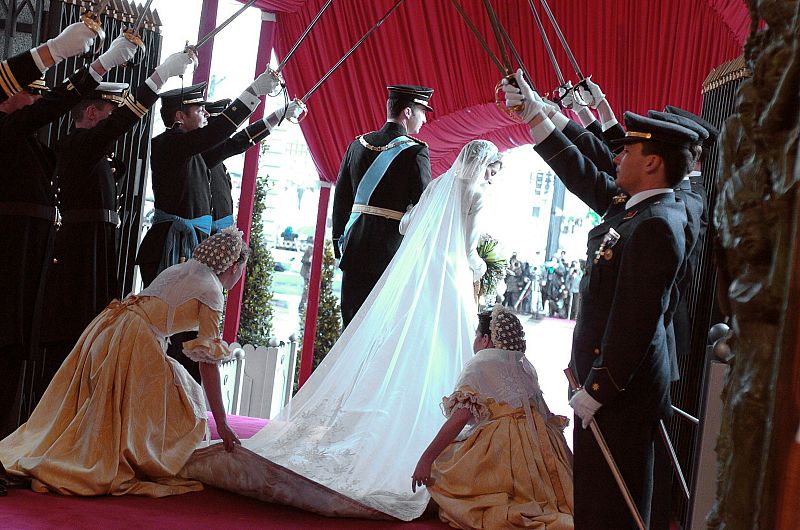 22.05.2009MD168. Madrid, 22/05/04.- El Príncipe Felipe y Letizia Ortiz salen de la Catedral de La Almudena en Madrid, tras contraer hoy matrimonio. EFE/MANUEL H. DE LEÓN ***POOL*** NO VENTASEFE -