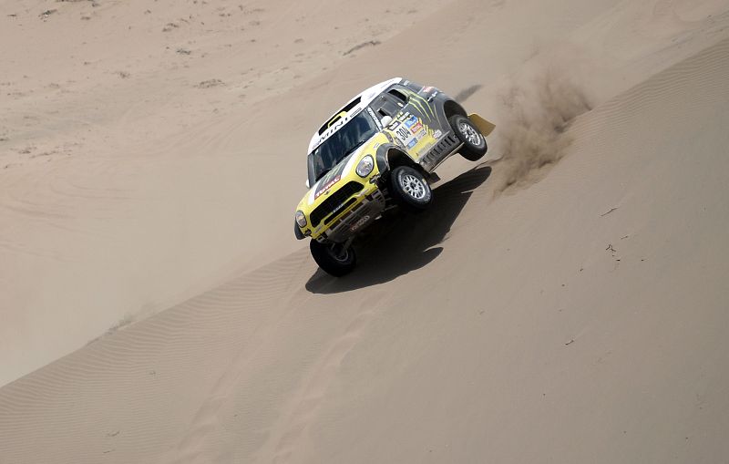 17.01.2014Stephane Peterhansel conduce junto a Nani Roma durante la duodécima etapa del Dakar 2014.AFP PHOTO / FRANCK FIFE -