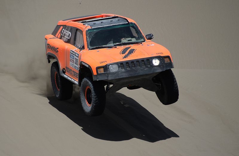El chileno Víctor Manuel Gallegos compite hoy durante la novena etapa del rally Dakar, en el desierto de Atacama en la región de Antofagasta en Calama (Chile).