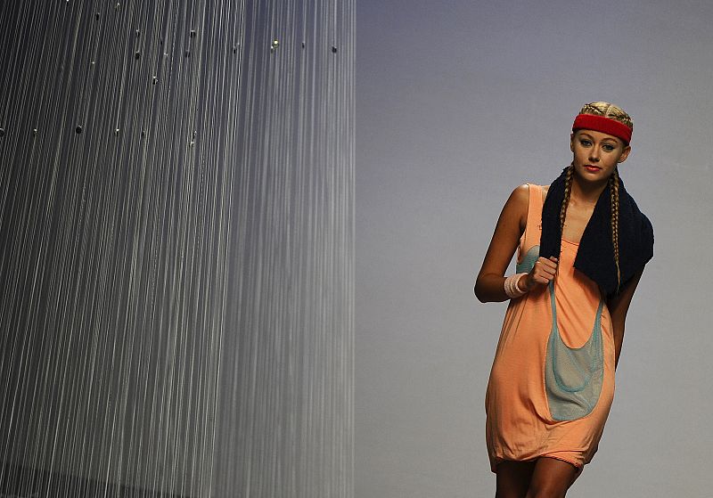 20.09.2011A model displays an outfit by Spanish designer Alba Cardalda during the Ego Cibeles Madrid Fashion Week on September 20, 2011. AFP PHOTO/ PIERRE-PHILIPPE MARCOUppm/jm