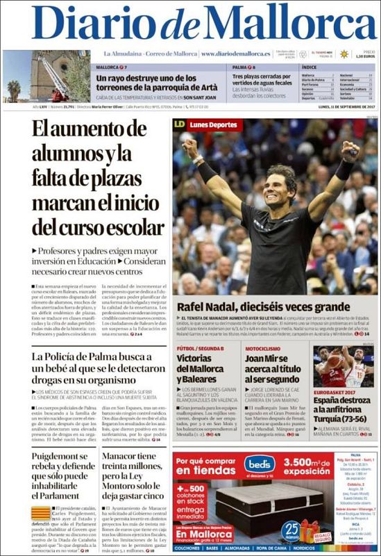 El 16º Grand Slam de Nadal, en las portadas de la prensa