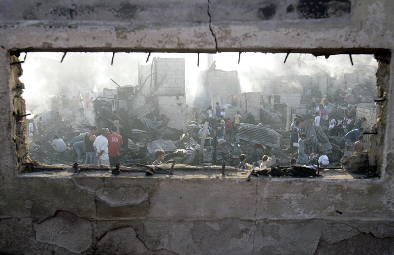 El fuego arrasa un barrio de Manila