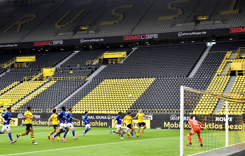 17.05.2020Las gradas vacías del Signal Iduna Park contrastaban con la expectación que había levantado el Dortmund - Schalke, el derbi de la cuenca del Ruhr. -