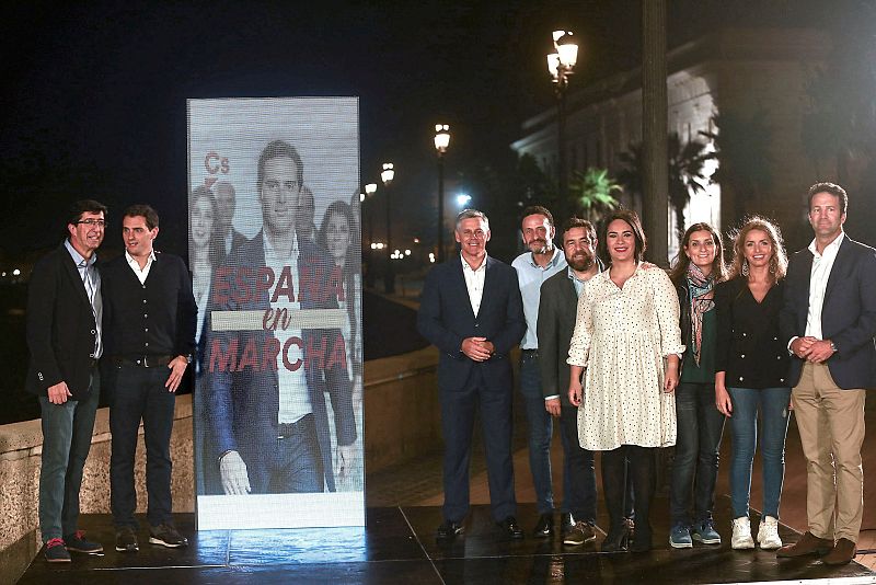31.10.2019El presidente de Ciudadanos, Albert Rivera (2i), acompañado entre otros del vicepresidente de la Junta de Andalucía, Juan Marín (i),en el acto de inicio de campaña en Cádiz.