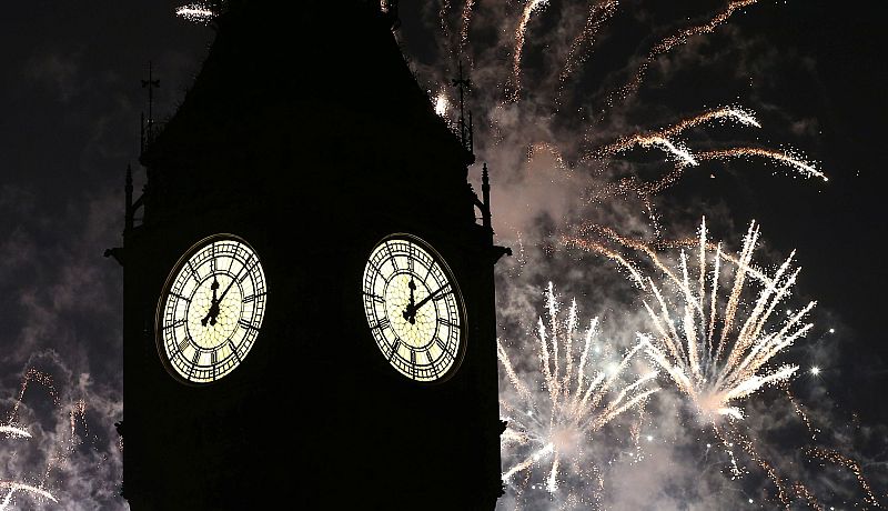 Imagen de las celebraciones del Año Nuevo en Londres conla emblemática torre del reloj Big Ben de fondo.