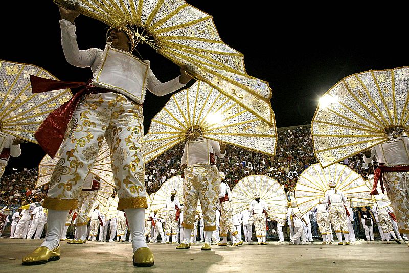 15.02.2010BRA101 - RÍO DE JANEIRO (BRASIL), 14/02/2010.- Integrantes de la escuela de samba União da Ilha participan hoy, domingo 14 de febrero de 2010, en el desfile del Grupo Especial en el sambódromo Marqués de Sapucaí en Río de Janeiro (Brasil). EFE/Antonio LacerdaEFE/Antonio Lacerda