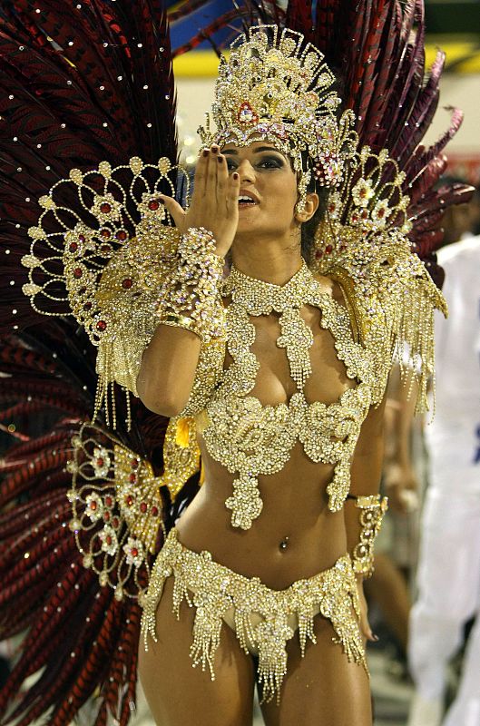 15.02.2010BRA02 - RÍO DE JANEIRO (BRASIL), 14/02/2010.- Una integrante de la escuela de samba União da Ilha participa hoy, domingo 14 de febrero de 2010, en el desfile del Grupo Especial en el sambódromo Marqués de Sapucaí en Río de Janeiro (Brasil). EFE/MARCELO SAYAOEFE/MARCELO SAYAO