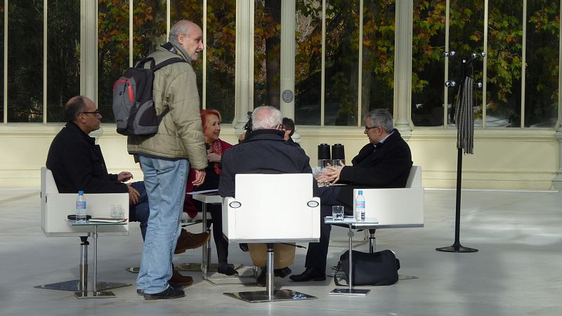 El realizador Miguel Ángel Viñas, con los protagonistas de la conversación