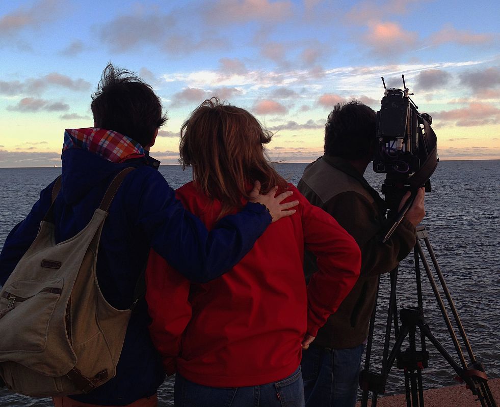 Irene, Susana y José María; sonido, realización e imagen del reportaje, rodando
