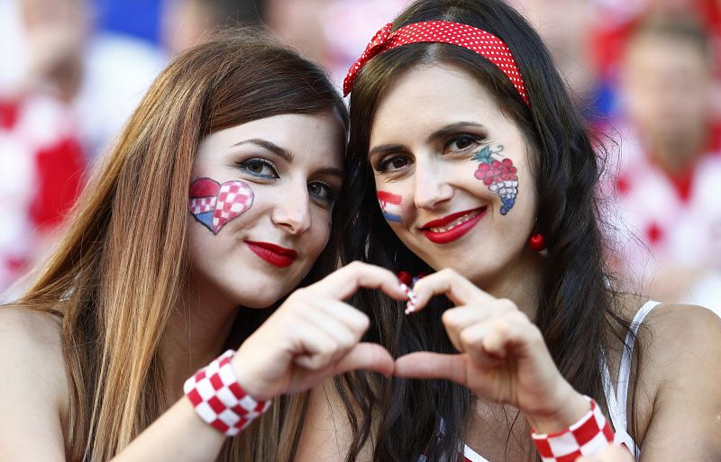 Dos aficionadas de Croacia, antes del partido