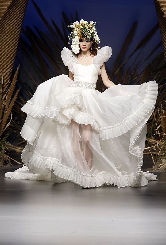 19.02.2010A model displays a creation by Spanish designer Francis Montesinos during the Cibeles Madrid Fashion Week Fall/Winter 2010 show in Madrid February 19, 2010. REUTERS/Sergio Perez (SPAIN - Tags: FASHION)REUTERS/Sergio Perez -