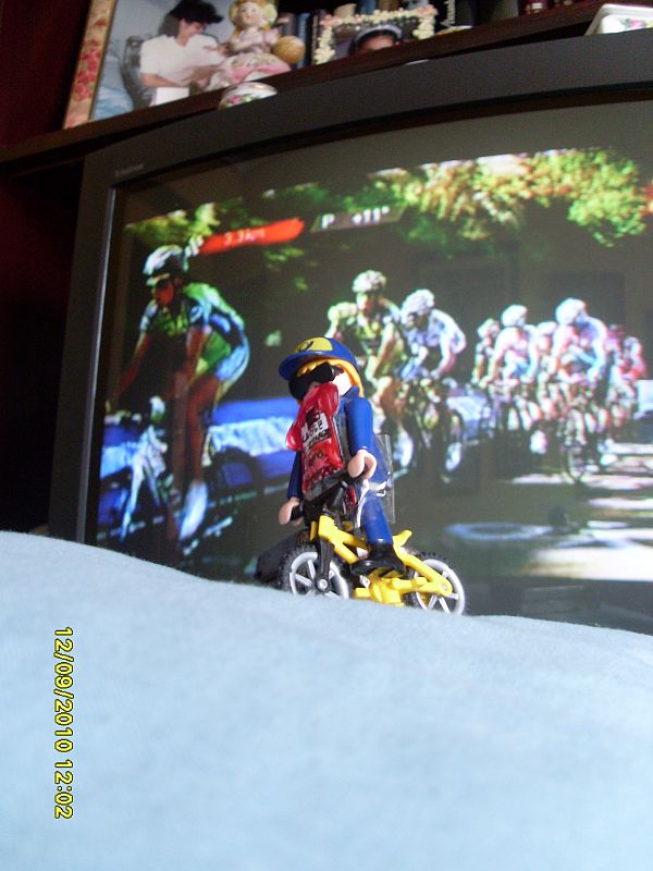 02.09.2010Al muñeco playmobil le cuesta subir por el cojín más que a los ciclistas....Si se fija uno, lleva puesto el maillot rojo de lider...Manuel Garcia