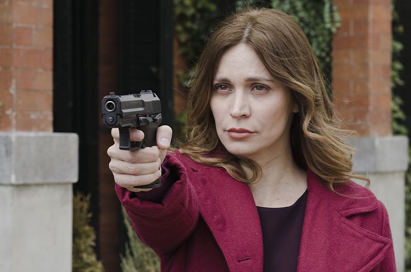 A los pocos minutos Emma aparece con la pistola, pero... apuntándole.