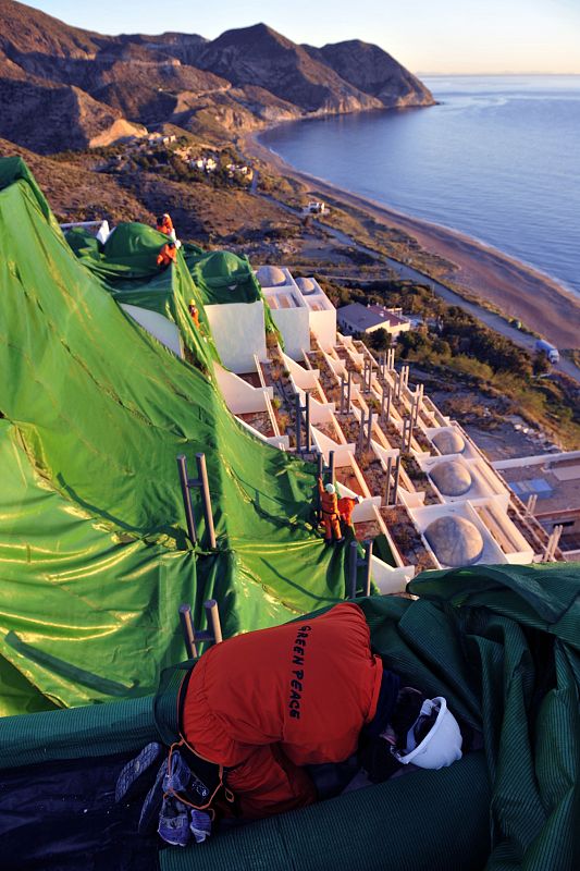 12.02.2009Greenpeace ha cubierto de verde la fachada del hotel El Algarrobico, construido en el parque natural Cabo de Gata- Nijar.Greenpeace -