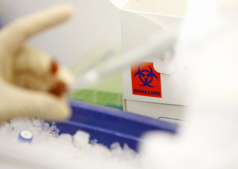27.04.2009A biohazard sign on a sample box is seen at the County of San Diego Health and Services Agency in San Diego, California April 26, 2009. The United States declared a public health emergency on Sunday because of an outbreak of swine flu that has been diagnosed in 20 people in this country -- the same strain suspected of killing 81 people in Mexico.REUTERS