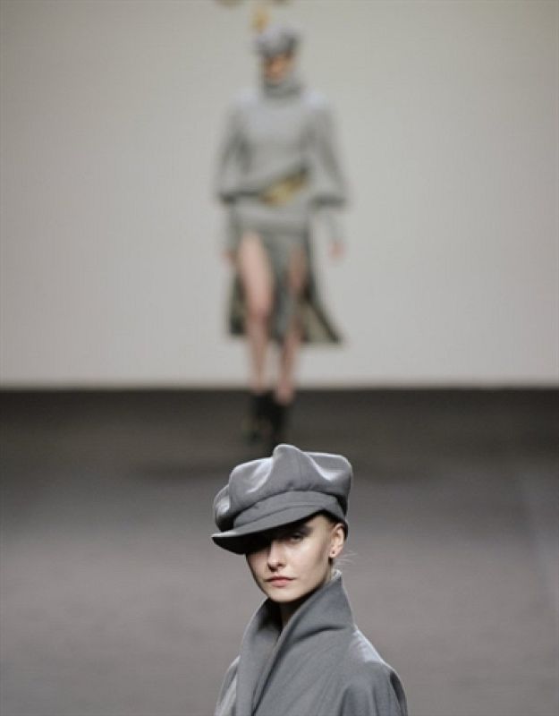 18.02.2011Al ritmo de la música francesa, con clara inspiración en la Belle Epoque las modelos han lucido capas en tonos grises. Una prenda que vuelve con fuerza.EFE/JUANJO GUILLÉN