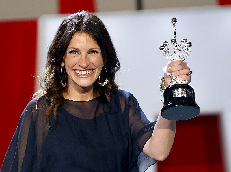 20.09.2010SS39. SAN SEBASTIAN, 20/09/2010.- La actriz estadounidense Julia Roberts tras recibir hoy el Premio Donostia 2010 en reconocimiento a su carrera durante la 58 edición del Festival Internacional de Cine de San Sebastián. EFE/Javier EtxezarretaEFE/Javier Etxezarreta -