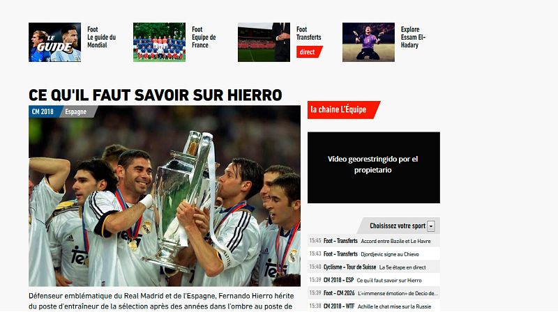 13.06.2018El diario francés 'L'Equipe' una institución, dedicaba una foto destacada a Fernando Hierro.noticias