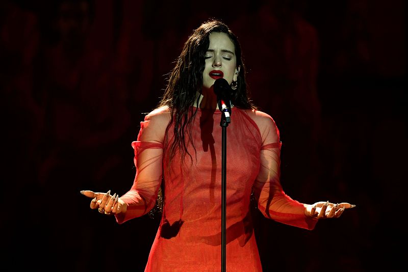 02.02.2019La cantante Rosalía interpretaMe quedo contigodurante la gala de los Goya.