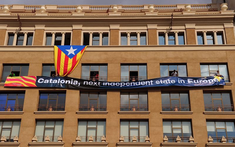 11.09.2012Una pancarta que reivindica a Catalunya como un estado más de Europa durante la Diada.AFP -
