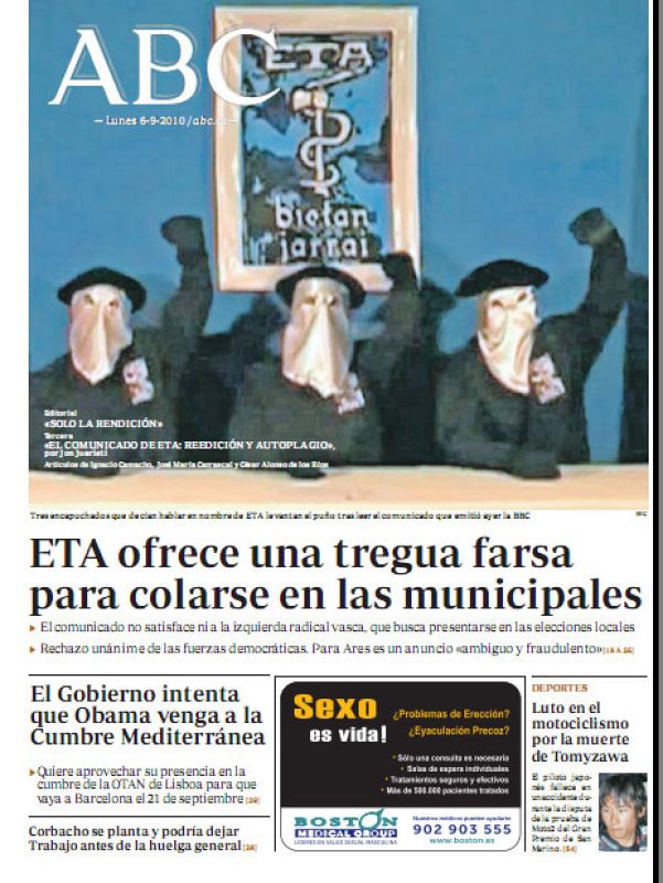 06.09.2010Portada de ABC tras el anucio del alto el fuego de ETAnoticias -