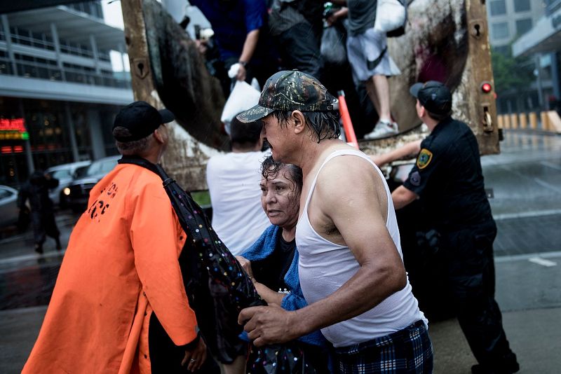 29.08.2017Evacuados por el huracán llegan al centro de acogida. El presidente de EE.UU., Donald Trump, visita este martes el estado de Texas para comprobar los daños.AFP PHOTO / Brendan Smialowski