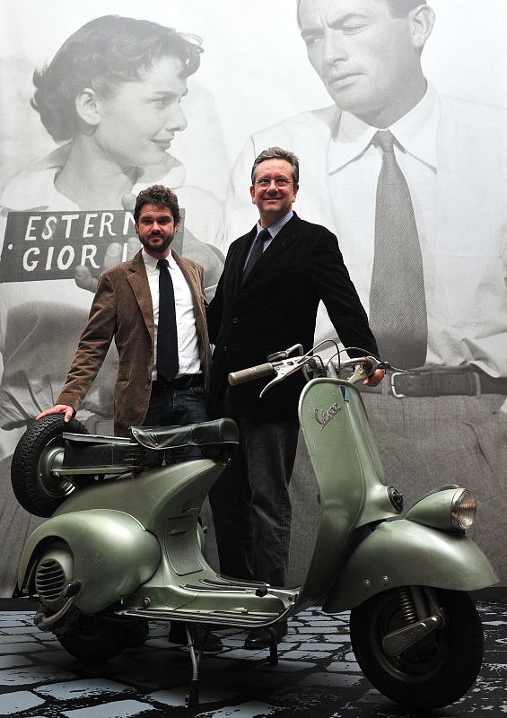 25.10.2011Los hijos de la actriz, Luca (i) y Sean (d) posan junto a la Vespa de 'Vacaciones en Roma'APZ/ej -