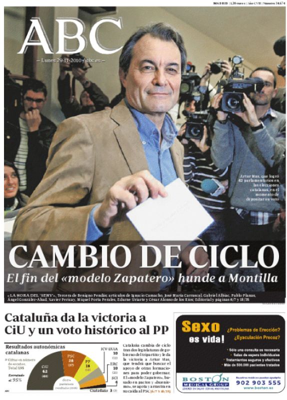29.11.2010Portada del Diario ABC sobre los resultados de las elecciones catalanasnoticias