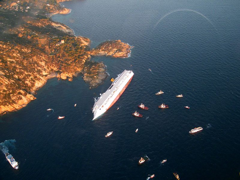 Imágenes del 'Concordia' junto a barcos guardacosta italiana