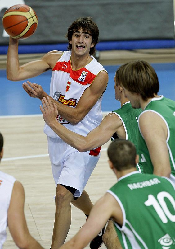 09.09.2009Rubio, presionado por los jugadores de la selección de Eslovenia.EFE