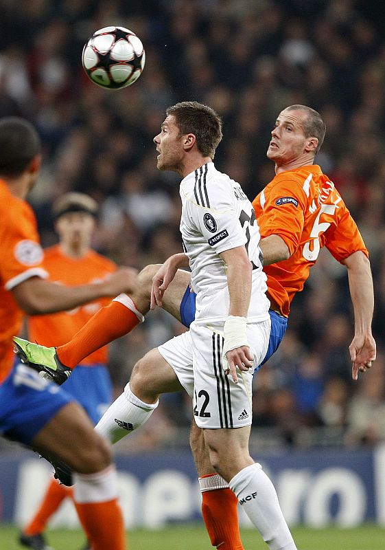 25.11.2009Xabi Alonso lucha por el balón con el centrocampista del Zurich, Xavier Margairaz.EFE