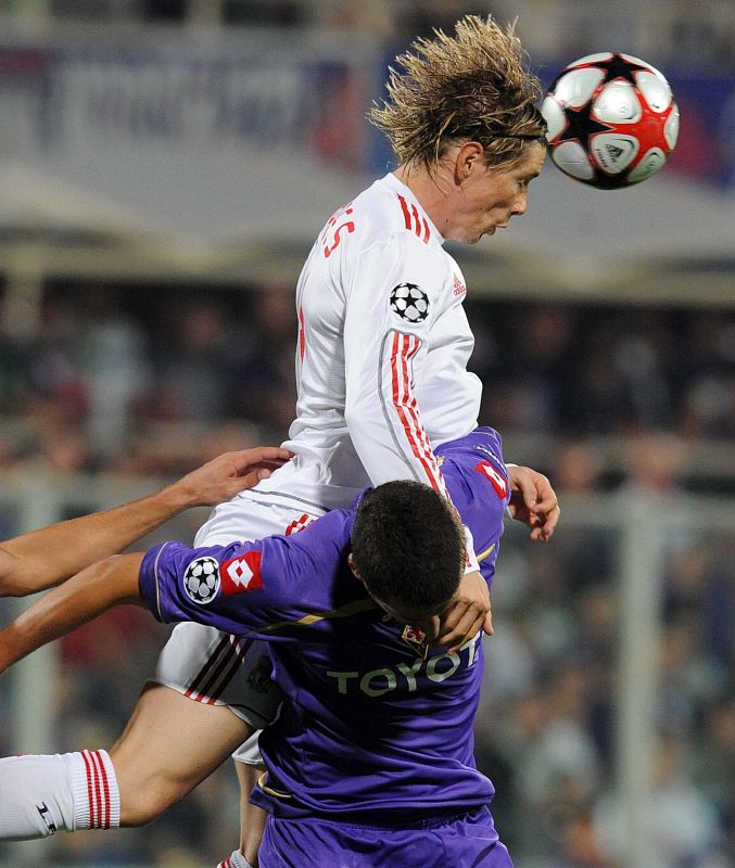 29.09.2009Fernando Torres golpea de cabeza un balón sobre el italiano Alessandro Gamberini.EFE -