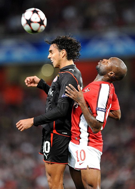 29.09.2009William Gallas lucha por el balón con el brasileño Diogo, del Olympiacos.EFE -