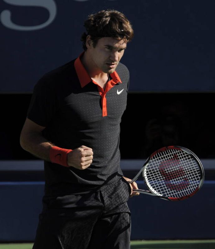 Federer celebra un punto ante el argentino Juan Martin Del Potro.