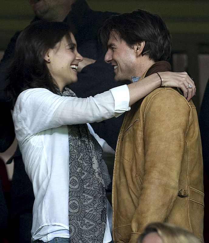 TOM CRUISE Y KATIE HOLMES EN EL PARTIDO SEVILLA-GLASGOW RANGERS