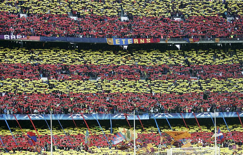 28.04.2010Un gran mural teñía de blaugrana el Camp Nou momentos antes del comienzo del partido.REUTERS -